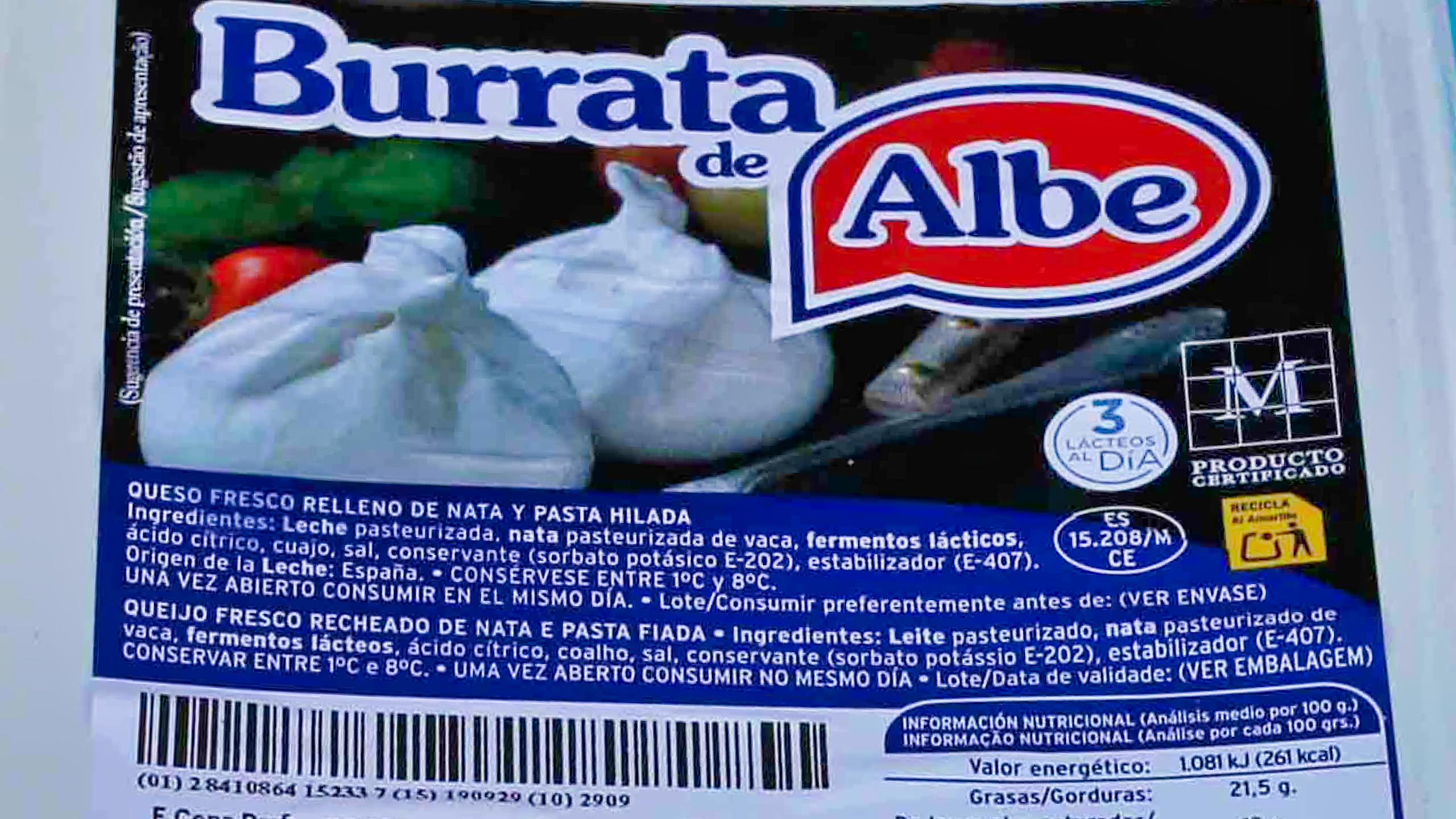 Tipo de leche: leche de vaca