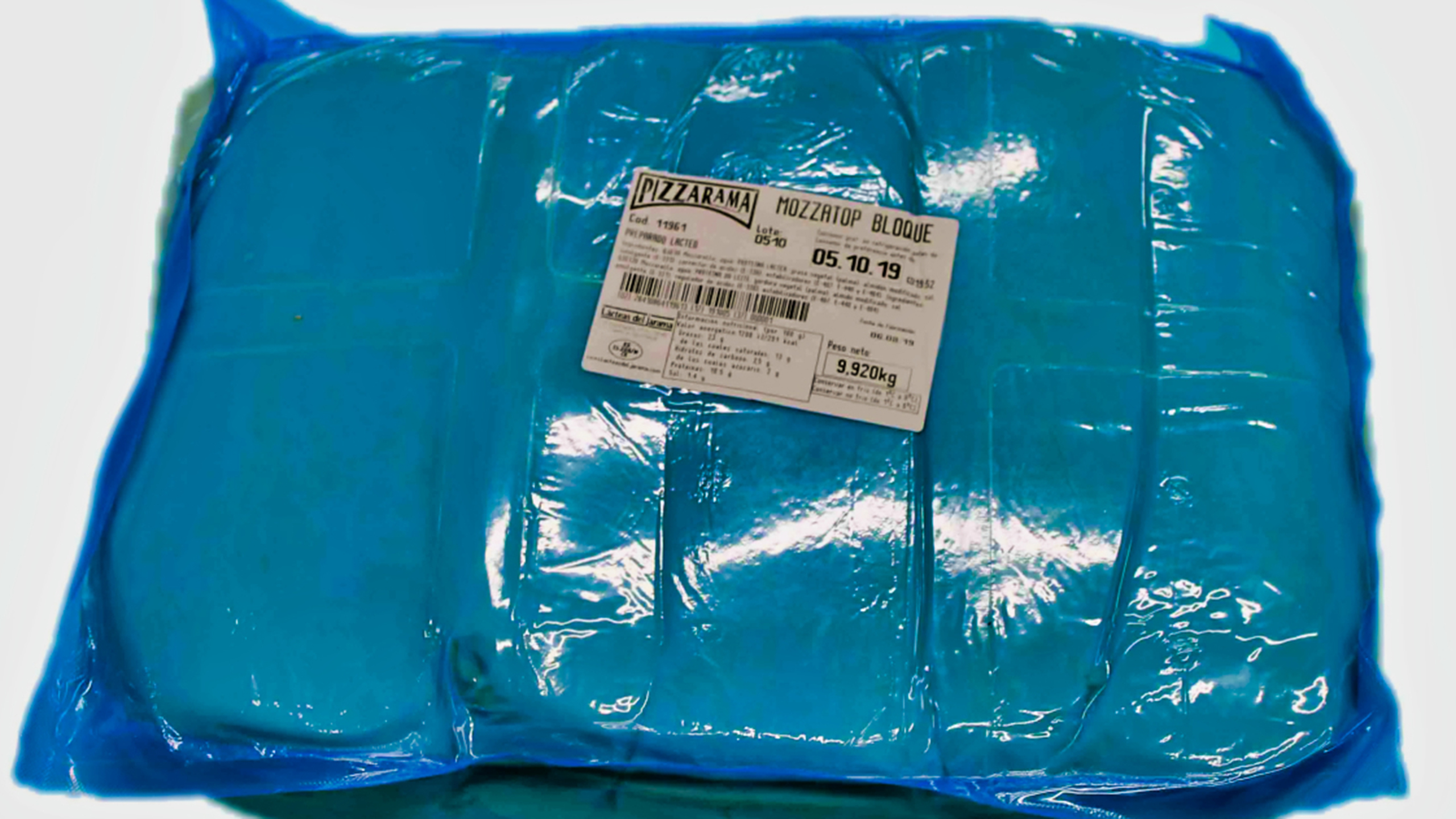 Mozzarella especial para trabajar a gran temperatura, ya que la grasa que contiene le protege del blisteado intenso. Viene presentado en formato de bloque de 10 kg, el cual aporta una mayor calidad y jugosidad, al producto al no ir rallado y poder prescin